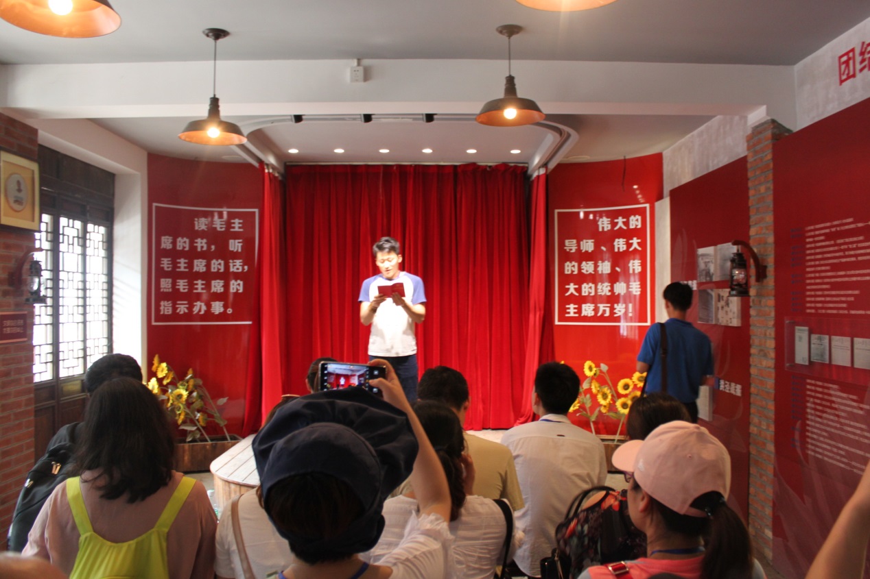 党支部一行人员经过约半小时的车程,就到达了西沙古镇的入口。党员们集体参观了“洪泾往事”展馆,展馆里保留着大量顾阿桃的照片、遗物和手迹,讲述的她是大字不识的农民,也是闻名天下的“学毛著标兵”,曾经随毛主席一起登上了天安门城楼事迹。