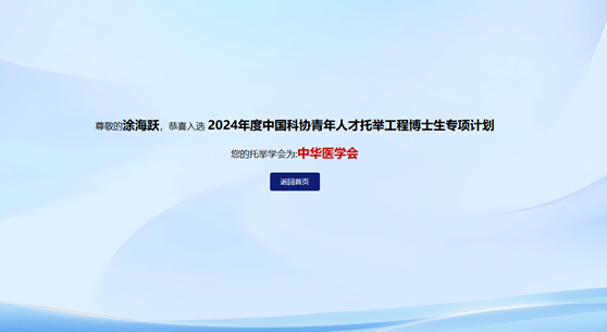 转化医学研究院涂海跃博士入选“2024年中国科协青年人才托举工程博士生专项计划”